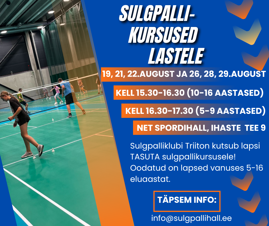 Sulgpalliklubi Triiton kutsub kõiki 5-16 aastaseid lapsi TASUTA sulgpallikursustele.